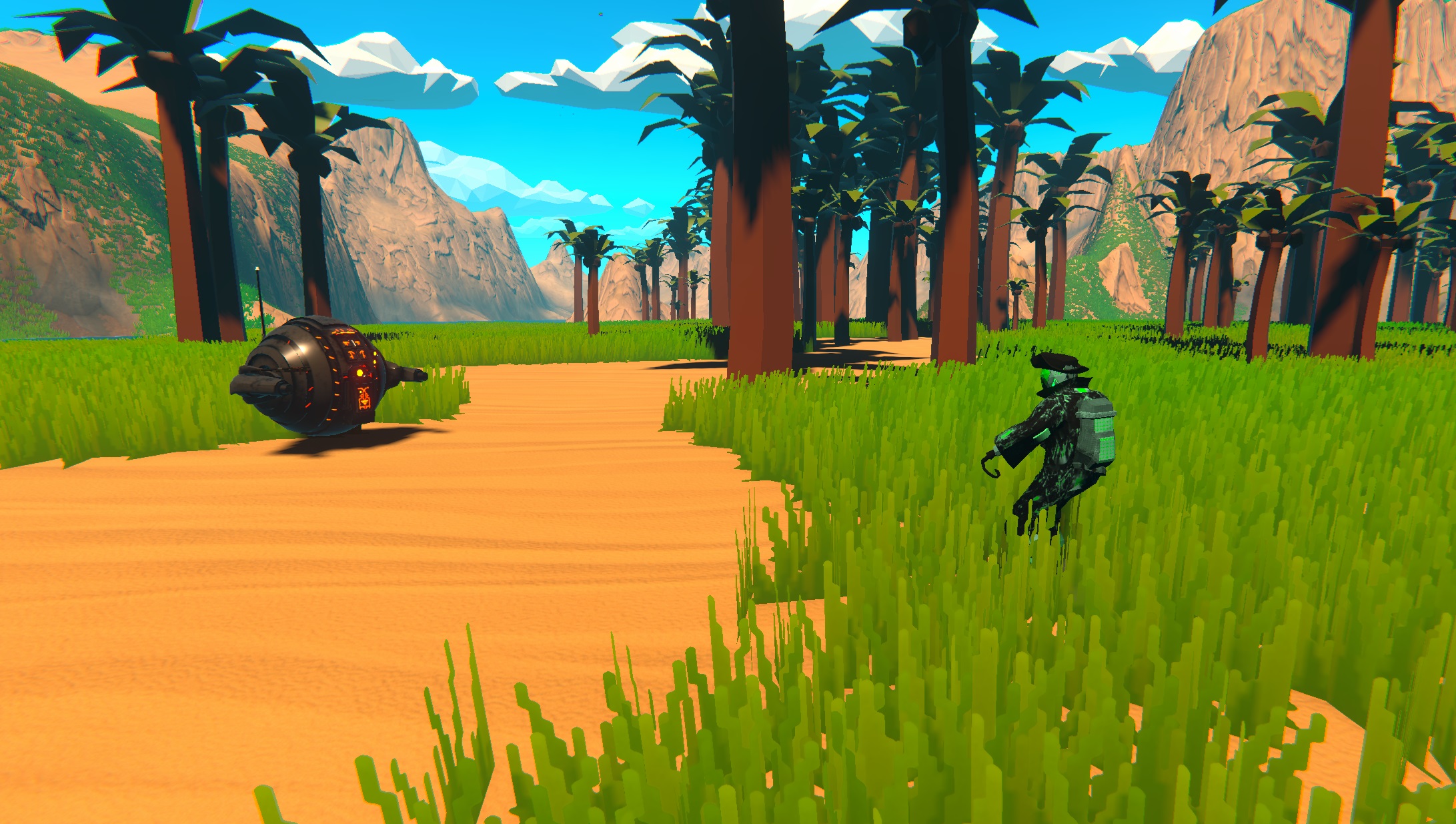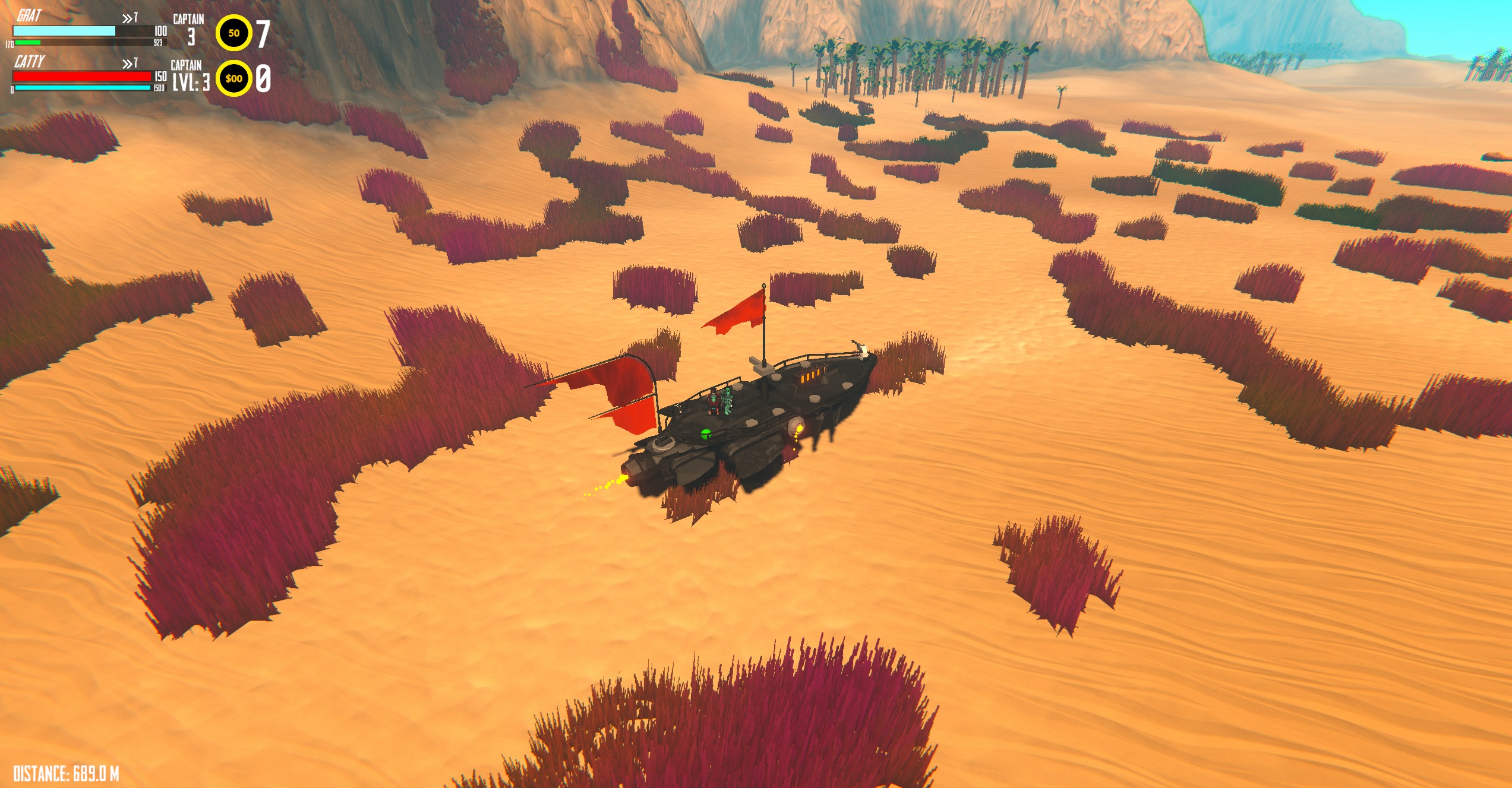 Take on the low dune seas and plunder various islands with your space pirate friends. This project was built to explore couch co-op ideas and to get used to Unity's new Input System. You can play up to 4 players. Grab ahold of various nodes aboard your ship to control it. Collect upgrades and drop them on the ship's deck to apply them. You win if you make your way to the portal (directed by the ship's mast direction indicator + distance in bottom left of view)